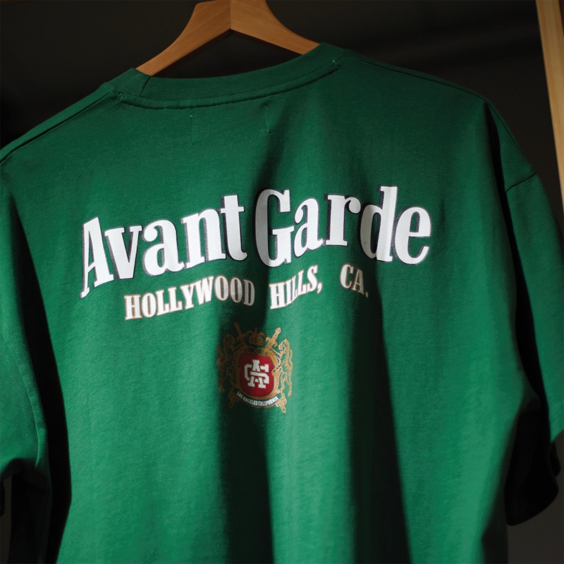 - Avant Garde short sleeve t-shirt. Our model is 6'2'' with a 38'' chest and wears a size M.