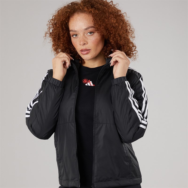 adidas Womens Essential 3-Stripes Insulated Hooded Jacket Black
