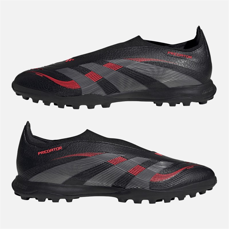 - adidas low profile laceless astro football boots. Go into every game knowing you'll score in adidas Predator League boots crafted for goals. Their Hybridfeel upper incorporates an all-over 3D texture, a laceless construction and grippy Strikescale fins to help you control the football during strikes. A lug rubber outsole ensures you're in the right place at the right time on artificial turf. This product features at least 20% recycled materials. By reusing materials that have already been created, we help to reduce waste and our reliance on finite resources and reduce the footprint of the products we make. ID3823