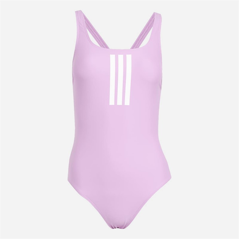 adidas Womens 3-Stripes V-Back Swimsuit Preloved Purple/White