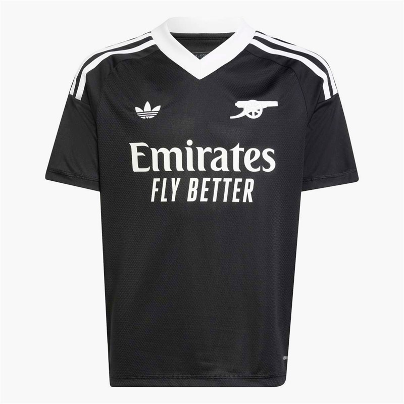 - adidas Kids AFC Arsenal FC short sleeve third goalkeeper jersey. Designed to help the Gunners keep clean sheets on the road. This juniors' Arsenal goalkeeper jersey from adidas includes stretchy fabric to support every leap and dive, and AEROREADY to ensure you stay dry through it all. Part of the club's third kit, it shares the Trefoil and cannon badge of the outfield shirts for a football archive-inspired look.This product is made with 100% recycled materials. By reusing materials that have already been created, we help to reduce waste and our reliance on finite resources and reduce the footprint of the products we make. JG0923