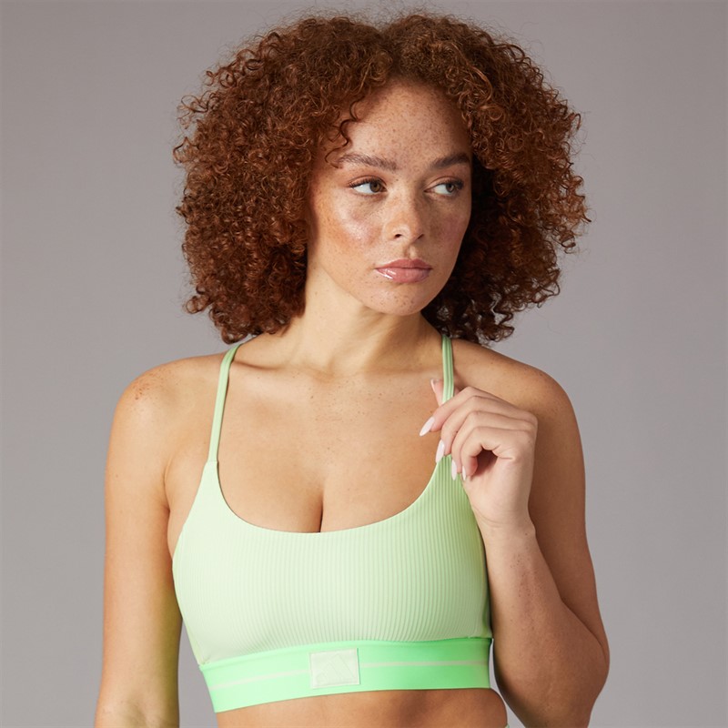adidas Womens Hyperglam Rib Light Support Bralette Semi Green Spark/Lime Burst