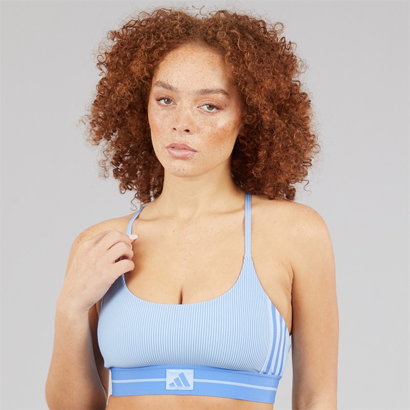adidas Womens Hyperglam Rib Light Support Bralette Glow Blue/Blue Fusion