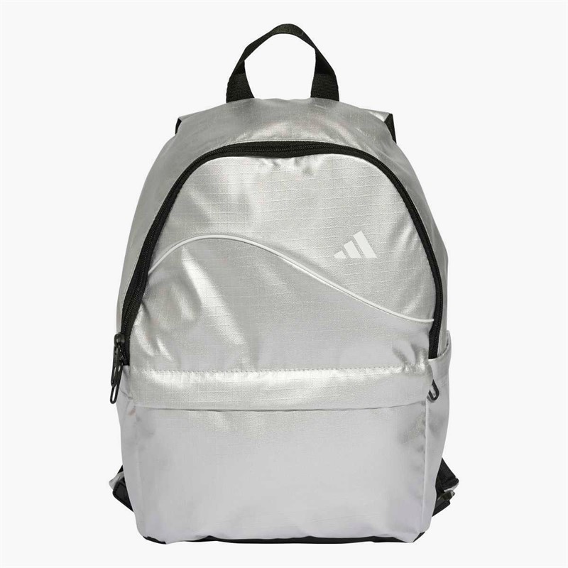 - adidas backpack. This adidas backpack is made to shine. A metallic 3 Bar Logo catches the light as you move, and durable polyester ripstop stands up to daily use. Zip up your essentials and adjust the straps for a custom fit. JN0926