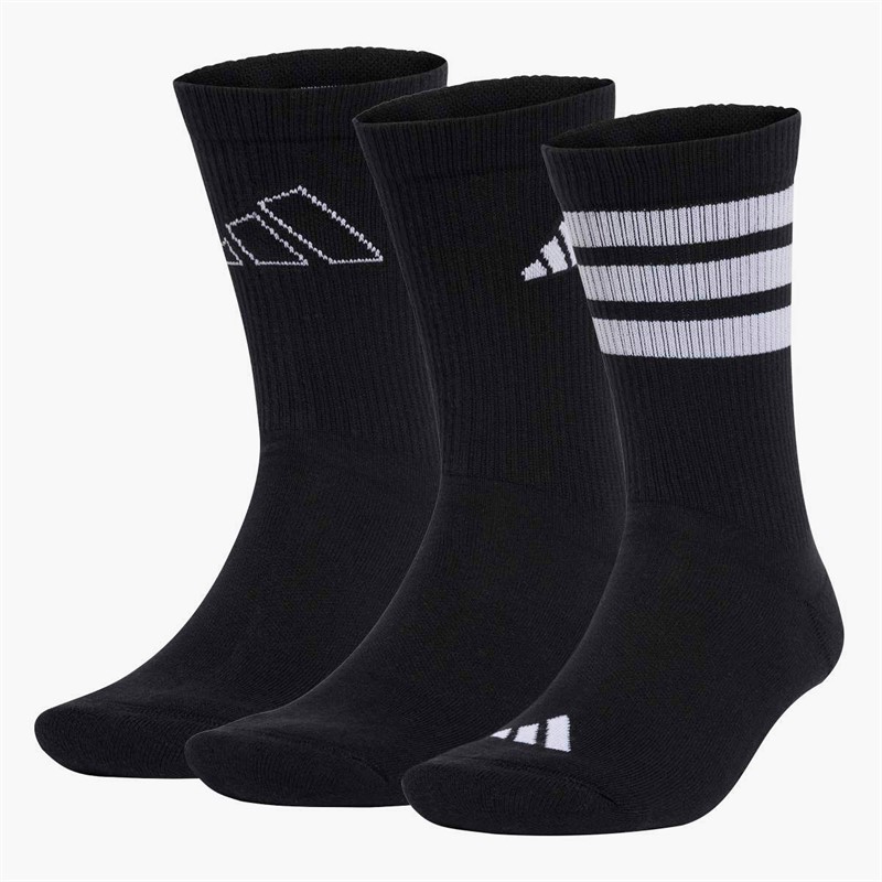 adidas Mens Logo Striped Three Pack Crew Socks Black/White