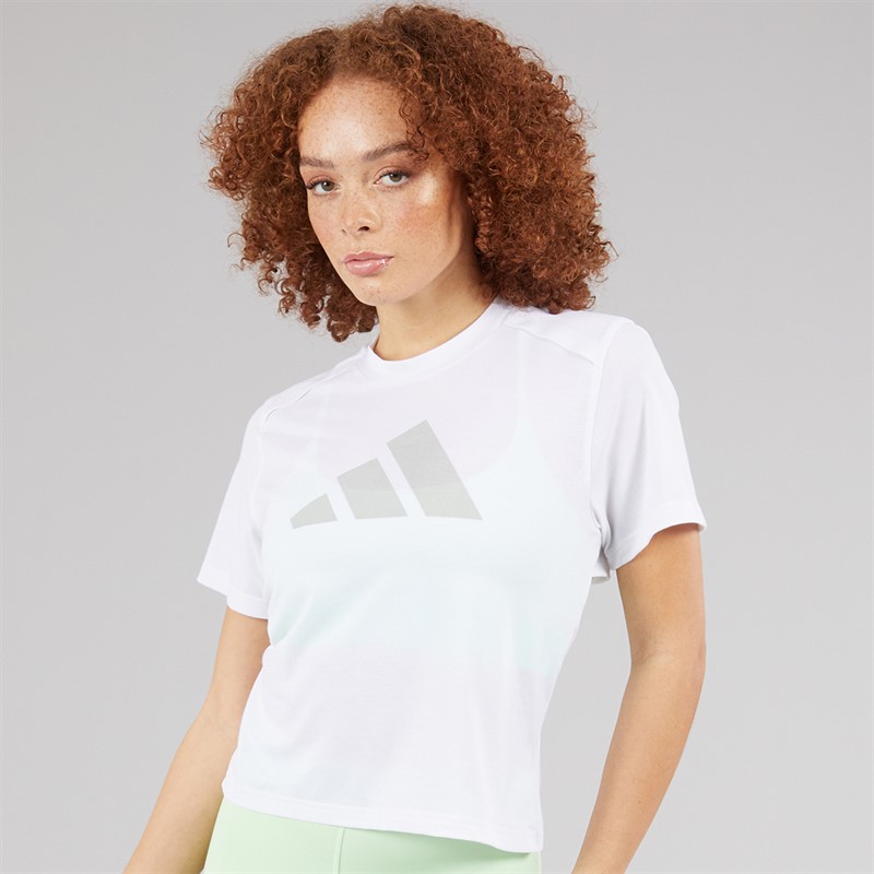 - adidas short sleeve t-shirt. You've got big goals, and this adidas training tee helps you achieve them. Hidden racerback construction adds ventilation so you can feel confident in your strength as you work towards your max lifts. AEROREADY wicks moisture away to keep you dry through every rep. A bold logo reflects your dedication to personal progress. This product is made with at least 70% recycled materials. By reusing materials that have already been created, we help to reduce waste and our reliance on finite resources and reduce the footprint of the products we make. IT2170