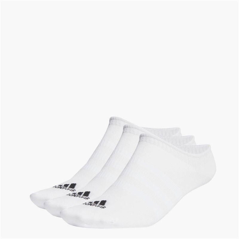 - adidas three pack no show socks. These adidas no-show socks are just right for a barefoot look with your sneakers. Arch support and a lightweight feel deliver a comfortable fit whether you're lounging on the couch or going for a run. They come three to a pack so you'll never be without if one pair is in the laundry. HT3463