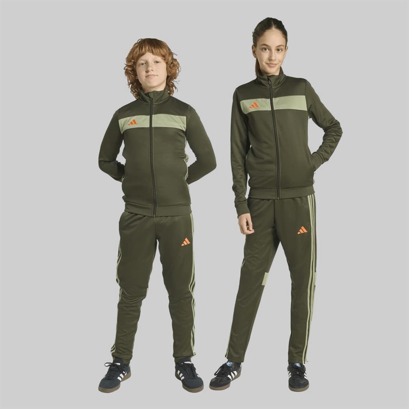 adidas Junior Tiro 25 Essentials Tracksuit Night Cargo/Tent Green/Impact Orange