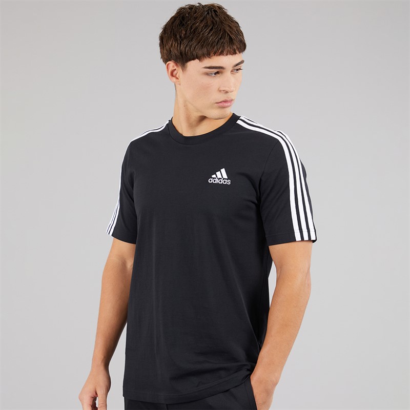 adidas Mens Essentials 3-Stripes T-Shirt Black/White