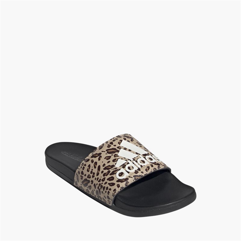 - adidas sliders. Whether relaxing poolside or running errands around town, these adidas Adilette comfort slides keep you moving in comfort. The synthetic single-bandage upper is quick to dry and durable enough for all-day wear. A contoured footbed cushions your stride while the textured outsole provides grip on any surface. ID8502