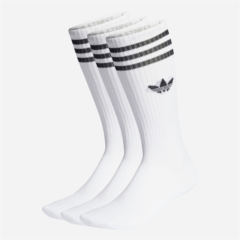adidas Originals Mens Trefoil Solid Stripe Three Pack Crew Socks White