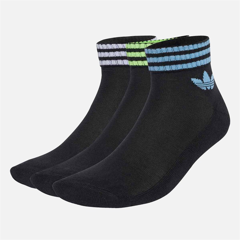 adidas Originals Mens 3-Stripes Trefoil Three Pack Ankle Socks Black/Ash Blue/Signal Green