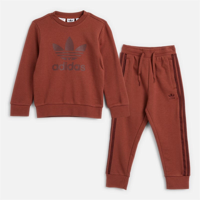 - adidas Originals Kids loopback sweatshirt and joggers two piece set. The colours are iconic, the branding is bold. This crew set lays the foundation to let kids' personalities shine. Trefoil logos on the top and pants show off adidas heritage while soft French terry fabric keeps them comfortable. JC6612