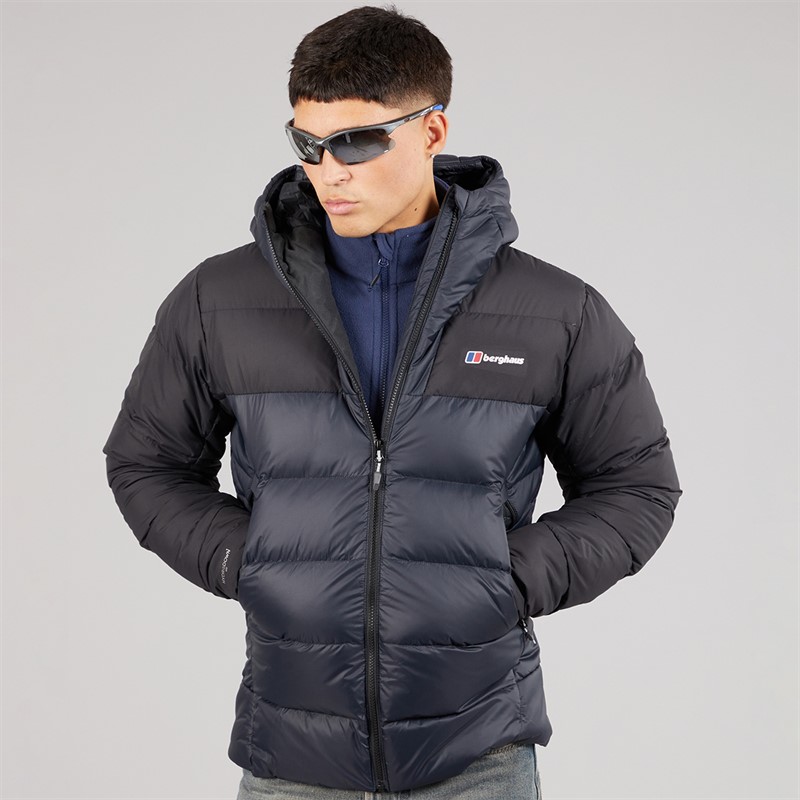 - Berghaus zip through hooded jacket with Hydrodown® innovative heat retention and cold wind protection. This jacket has PERTEX® Quantum windproof technology.