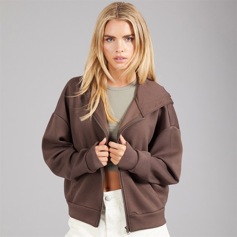 Brave Soul Womens Julie Zip Through Hoodie Chocolate