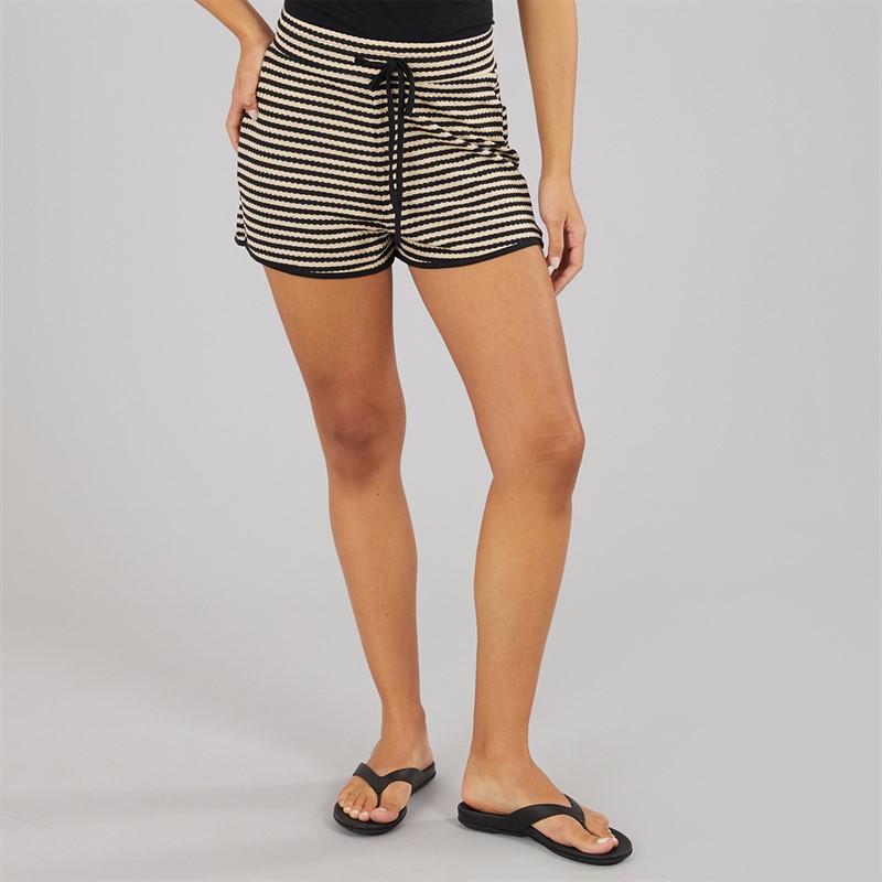 Brave Soul Womens Heart Tie Front Shorts Black/Beige