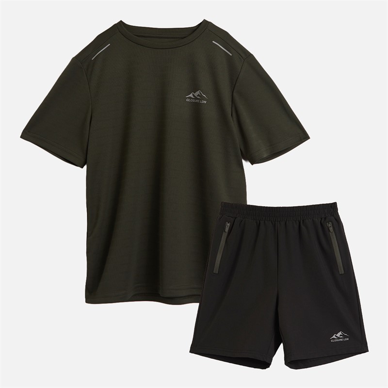 Closure London Boys Training Poly T-Shirt And Shorts Co-Ord Set Khaki/Black