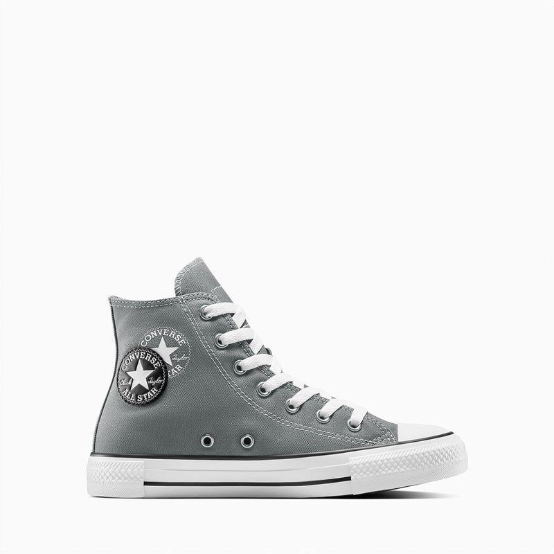 Converse Junior Chuck Taylor All Star Hi Double Logo Trainers Sharkskin/White/Black