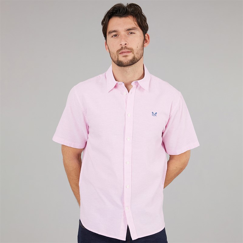 Crew Clothing Mens Classic Fit Short Sleeve Linen Shirt Fragrant Lilac/Heritage White