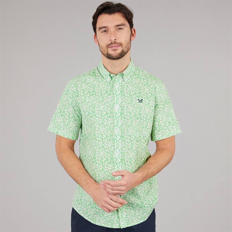 Crew Clothing Mens Short Sleeve Verity Poplin Shirt Light Grass Green