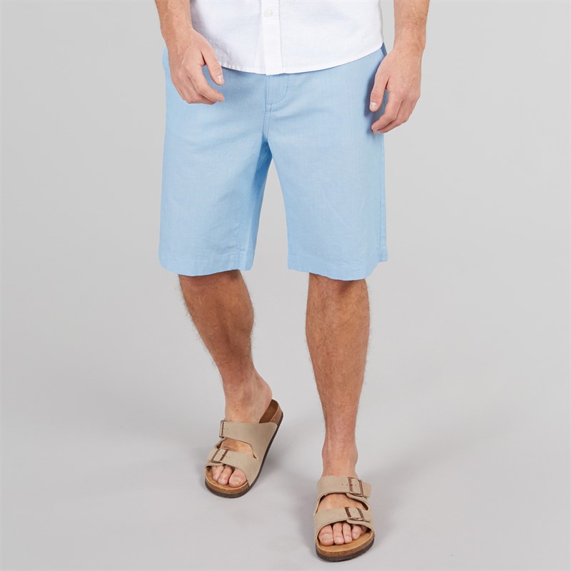 Crew Clothing Mens Linen Blend Shorts Malibu Blue/Heritage White