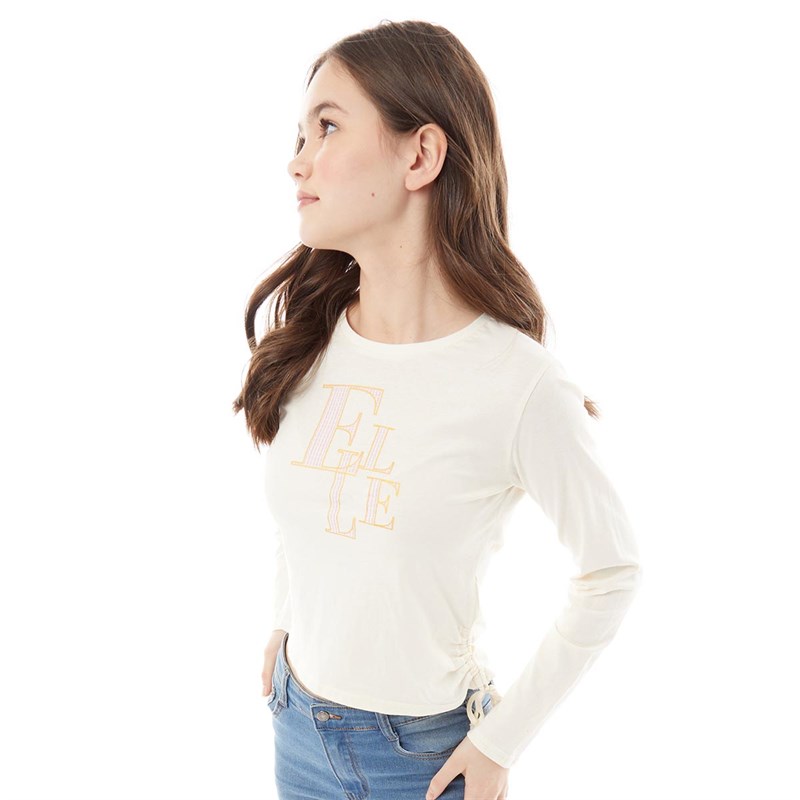 - Elle long sleeve jersey top with drawcord adjustable ruched side detail.