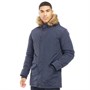 - Fluid lightly padded parka jacket with a faux fur hood trim.
