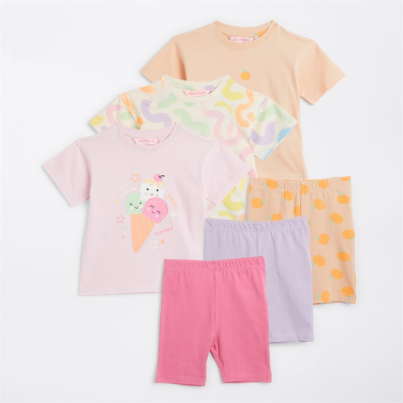 Board Angels Girls Printed Three Pack T-Shirts And Cycle Shorts Sets Multi