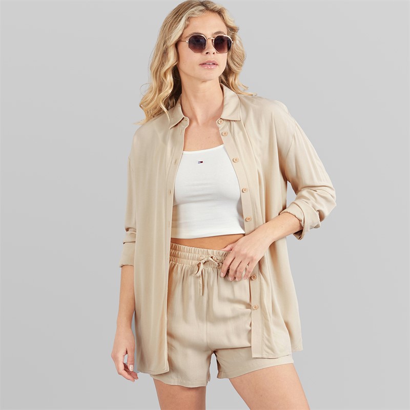 Board Angels Womens Co-Ord Long Shirt And Shorts Set Ecru
