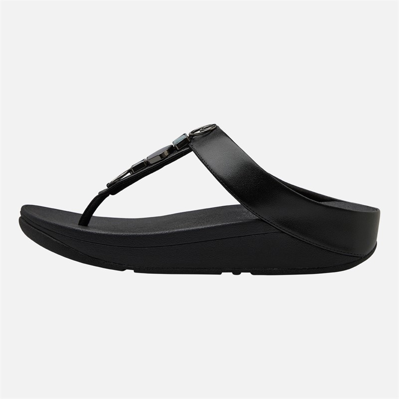 FitFlop Womens Fino Stone Trim Toe Post Sandals Black
