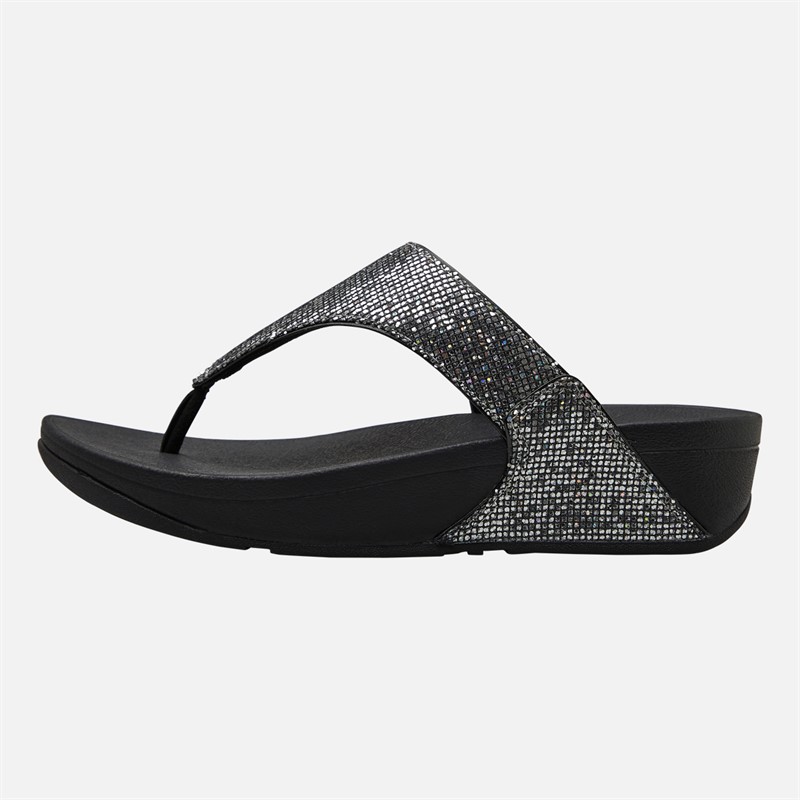 FitFlop Womens Lulu Glitterball Toe Post Sandals Silver