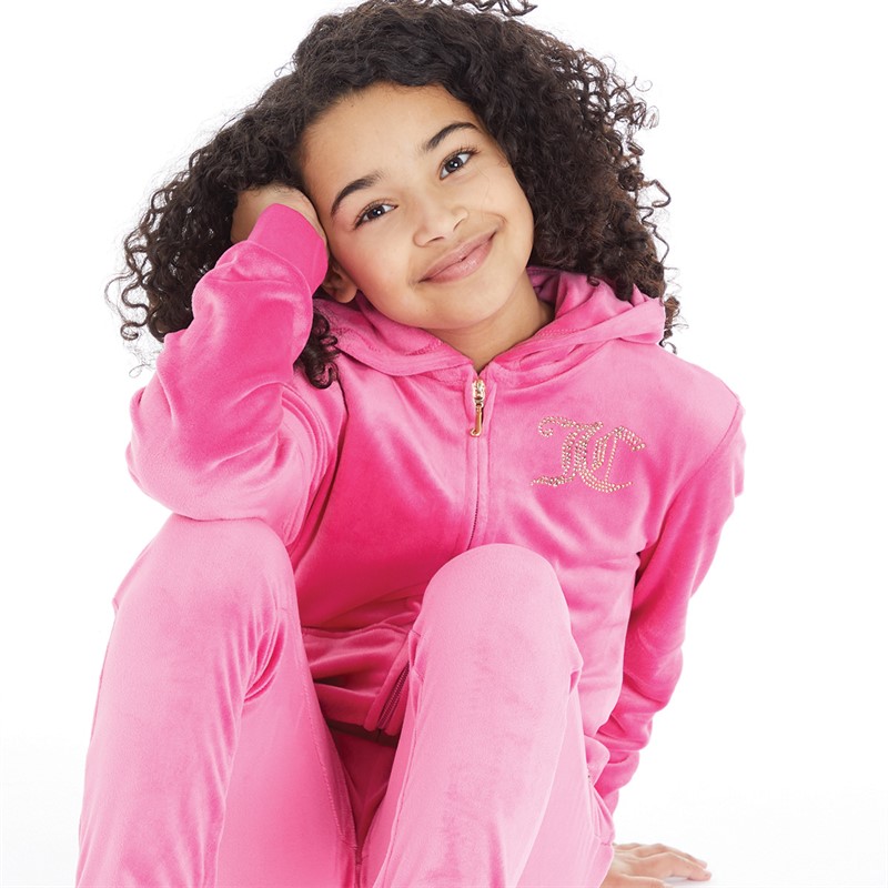 Juicy Couture Girls Diamante Velour Zip Thru Hoodie Fuchsia Purple