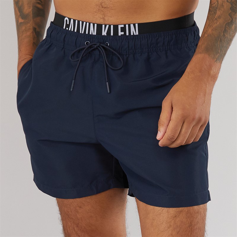- Calvin Klein Jeans mesh lined swim shorts with water repellent finish for quicker drying. Our model is 6'2'' and wears a size M.