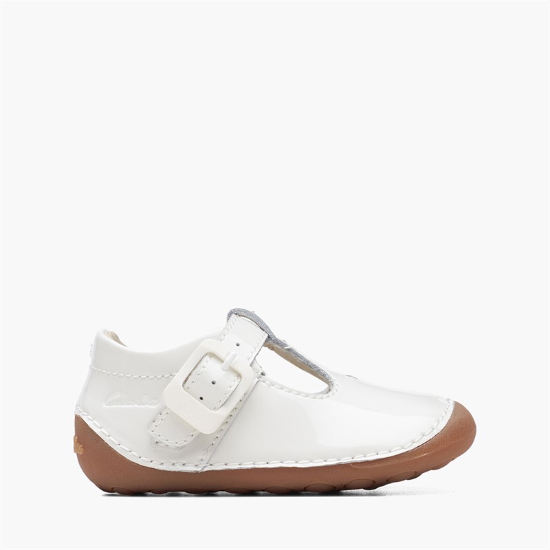Clarks Infant Girls Tiny Beat H-Fit T-Bar Shoes White Patent