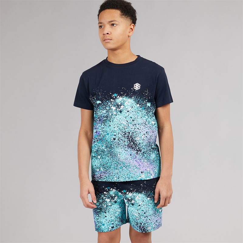 Kangaroo Poo Boys Splatter Print T-Shirt And Shorts Set Navy