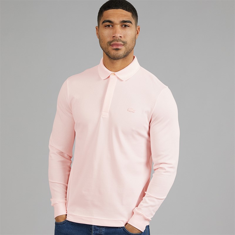 Lacoste Mens Regular Fit Stretch Long Sleeve Polo Shirt Light Pink