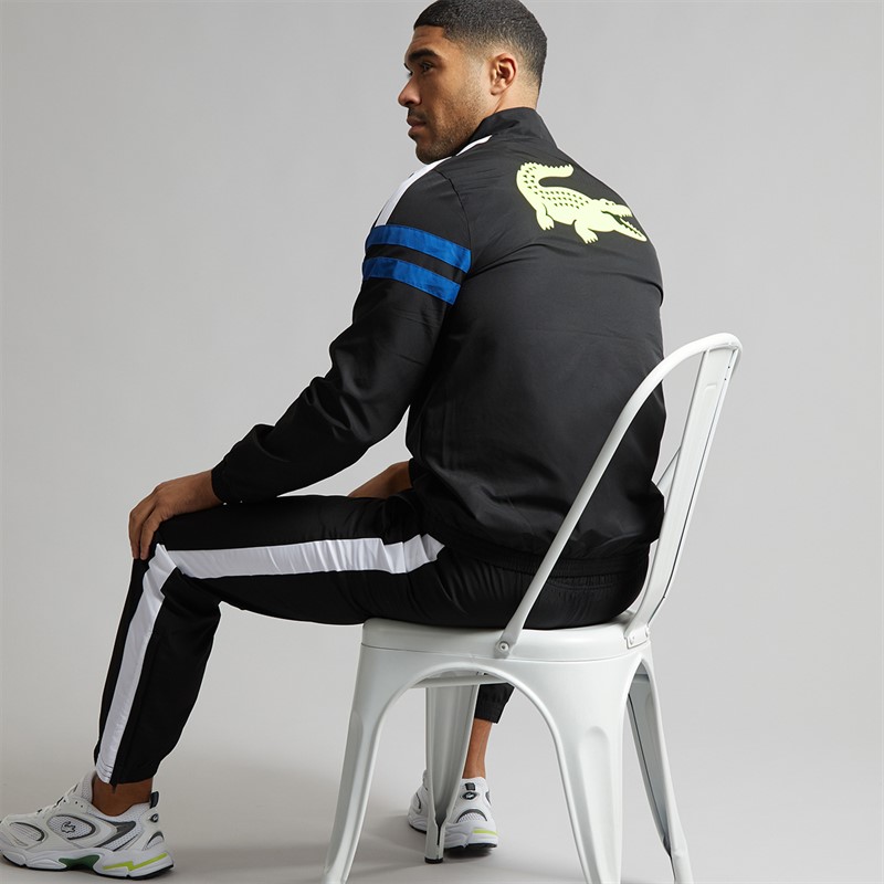 Lacoste Mens Printed Tracksuit Black/Blue/White