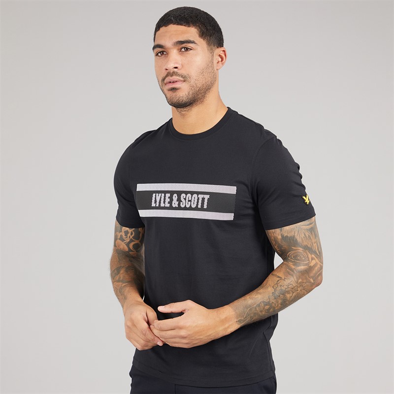 Lyle And Scott Vintage Mens Stripe Logo Graphic T-Shirt Jet Black