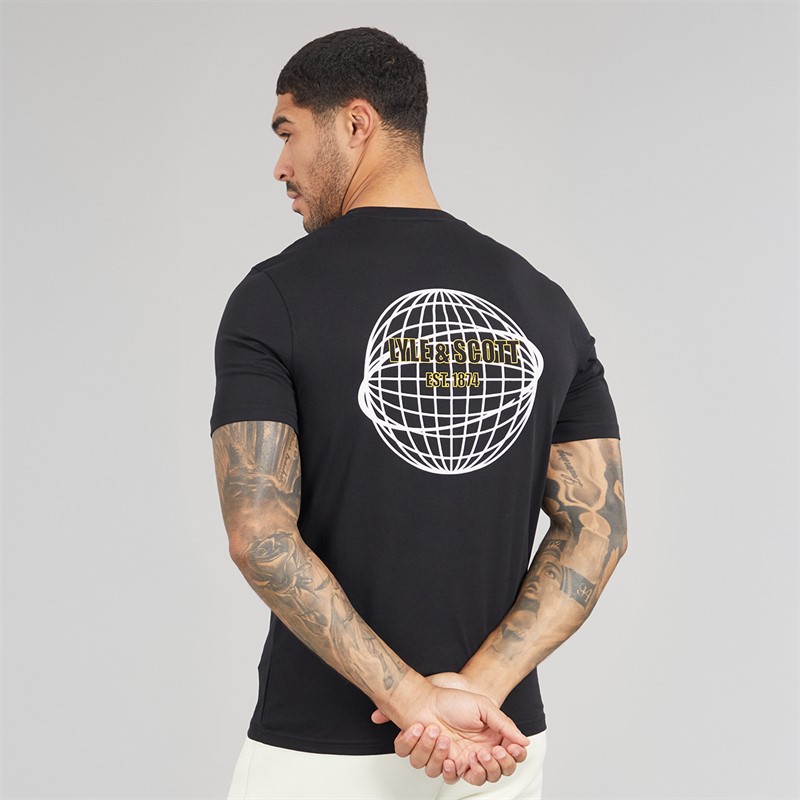 Lyle And Scott Vintage Mens Geometric Globe Graphic T-Shirt Jet Black