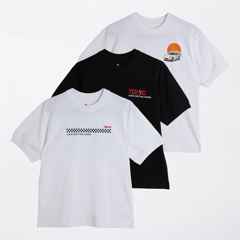 LUKE 1977 Boys Tokyo Drift Three Pack T-Shirts White/Black/White White/Black/ White
