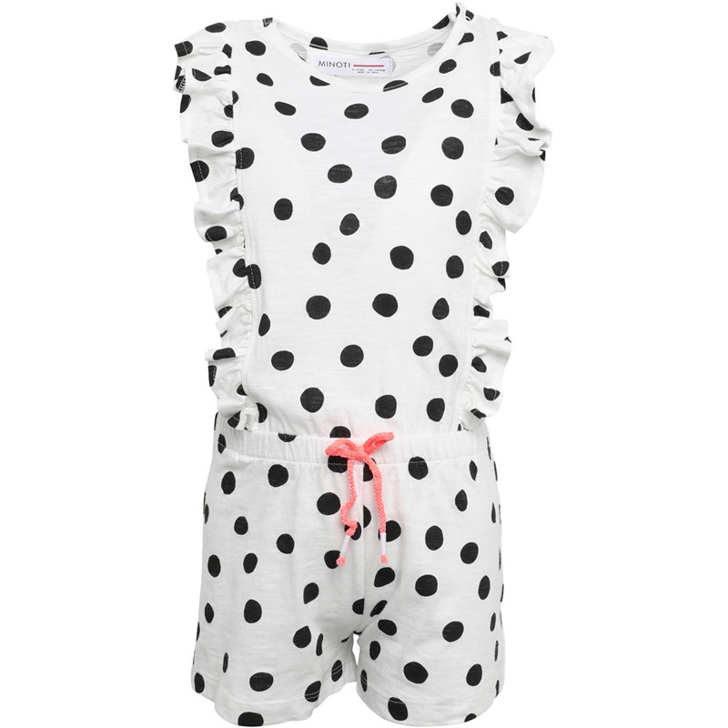 - MINOTI sleeveless playsuit with ruffle details and all over dot print design.