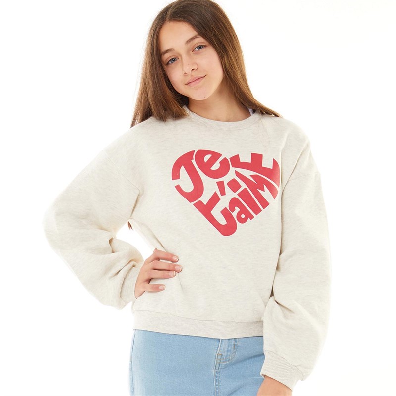 MINOTI Girls Basic Je Taime Sweatshirt Coatmeal