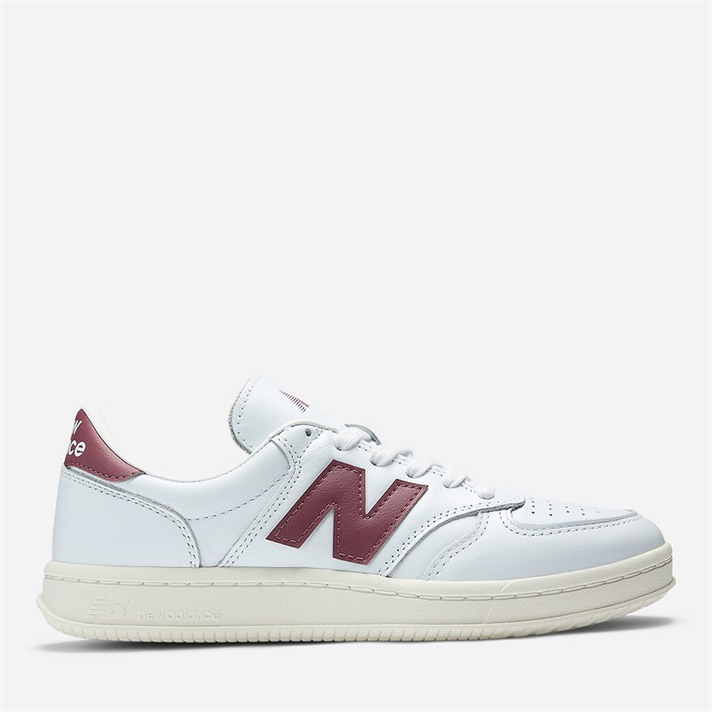 New Balance T500 Trainers White/Washed Burgundy