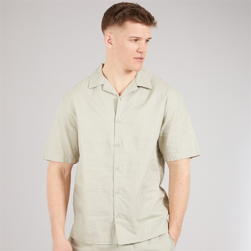NICCE Mens Lichi Linen Revere Short Sleeve Shirt Grey Stone