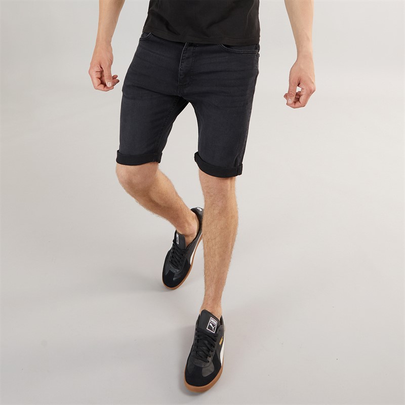 - Henleys denim shorts. Our model is 6'0'' and wears a size 32.