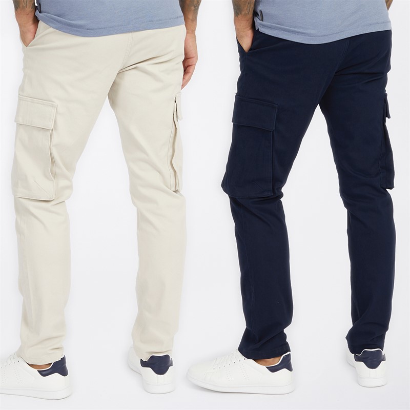 French Connection Mens Two Pack Cargo Pants Marine/Stone