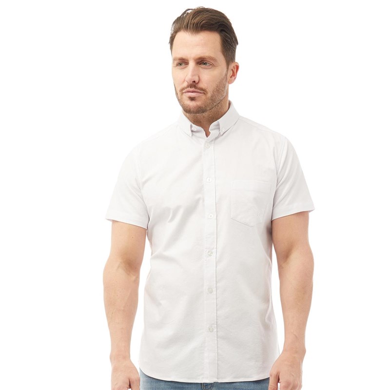 Onfire Mens Stretch Cotton Oxford Short Sleeve Shirt White