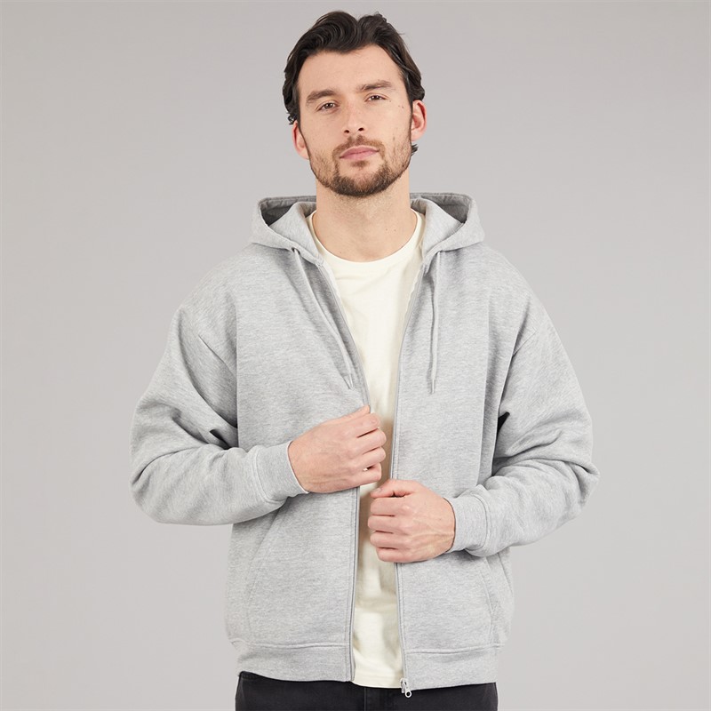 Onfire Mens Oversized Zip Through Hoodie Light Grey Marl