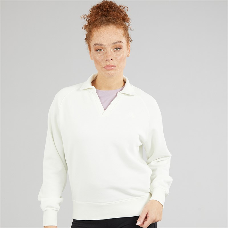 Champion Womens Icons Wash Logo Polo Neck Sweatshirt White