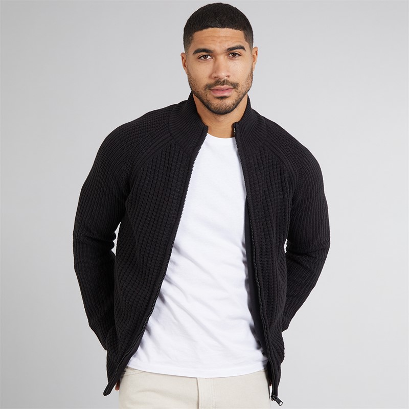 THREADBARE Mens Westleigh Full Zip Cardigan Black